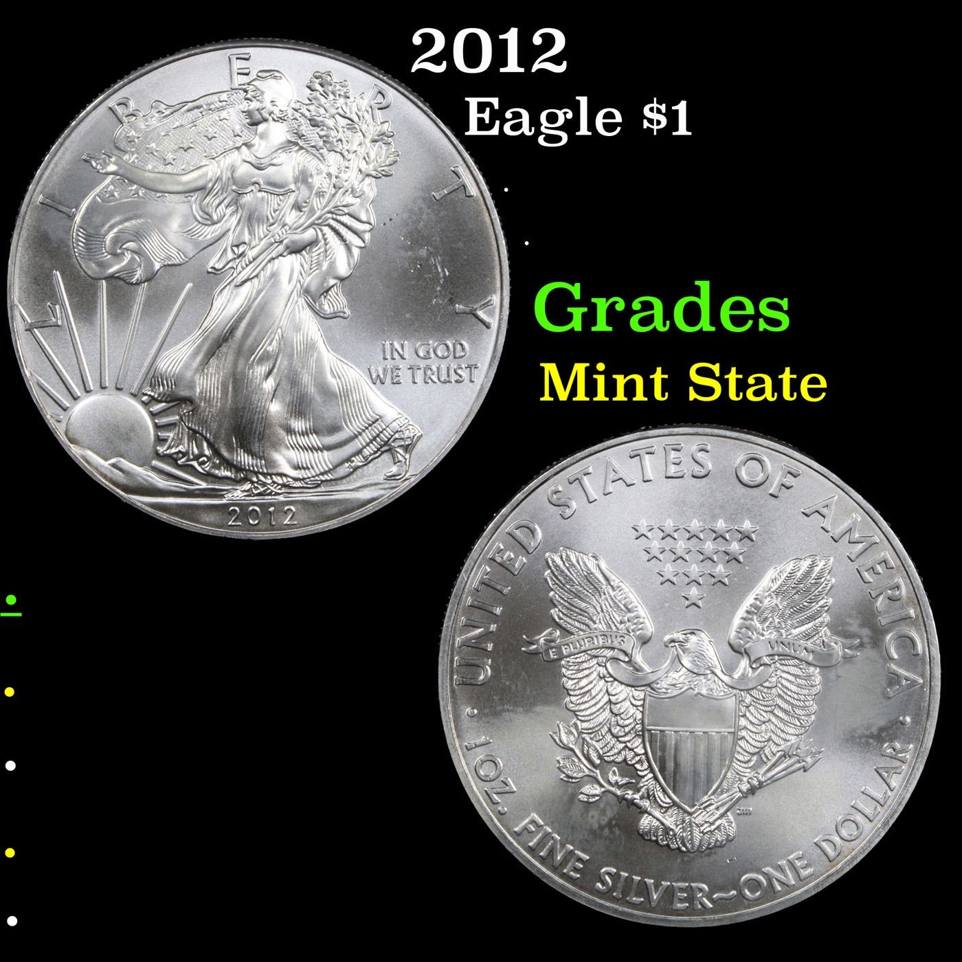 2012 Silver Eagle Dollar $1 Grades Mint State.
