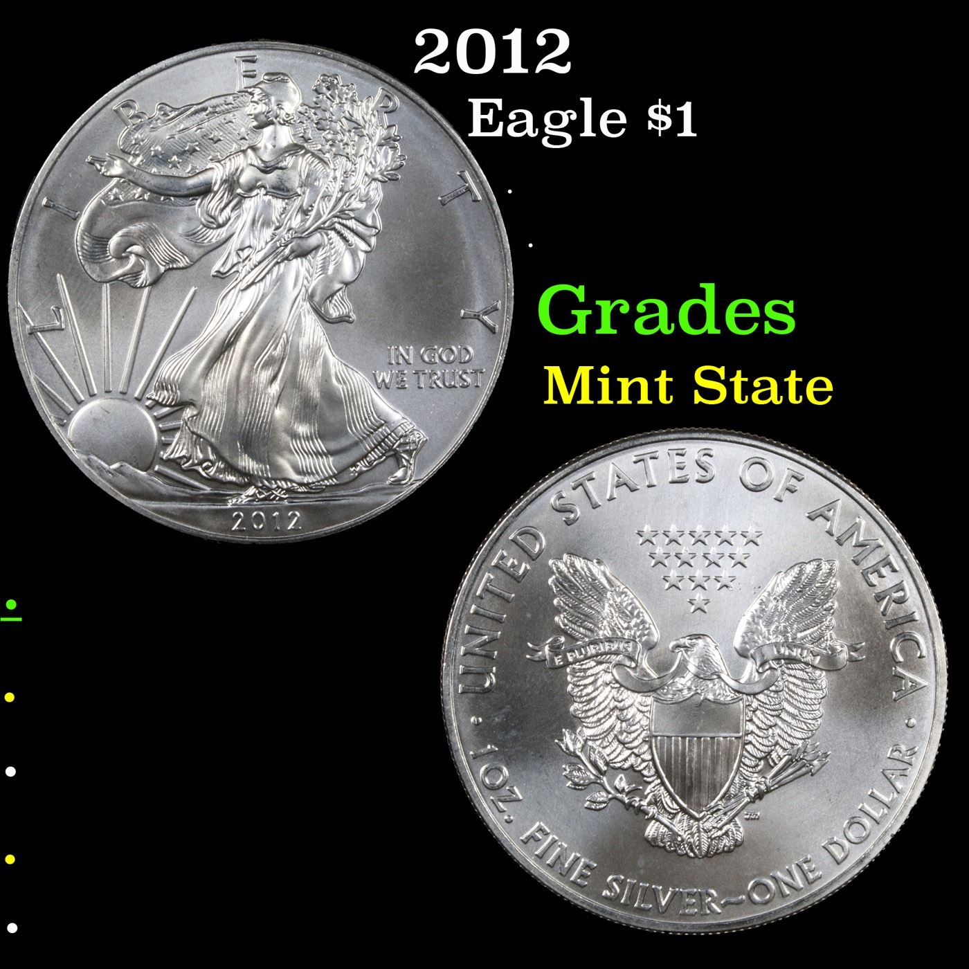 2012 Silver Eagle Dollar $1 Grades Mint State.