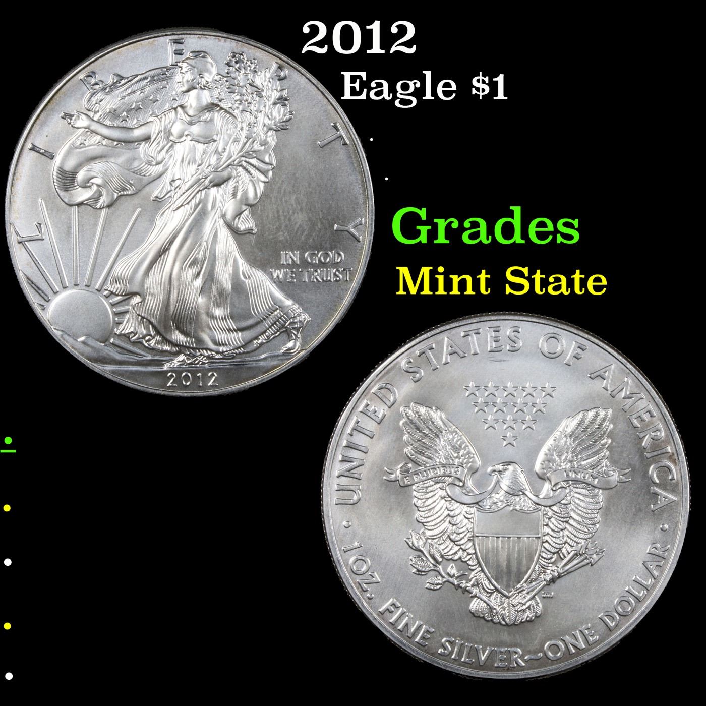 2012 Silver Eagle Dollar $1 Grades Mint State.