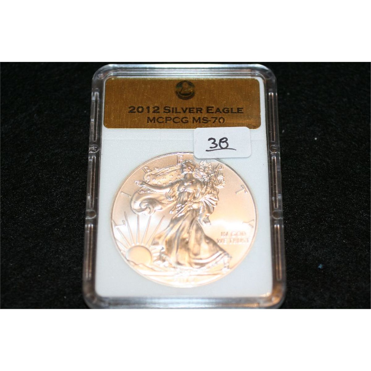 2012 Silver Eagle one dollar, MCPCG graded, MS70