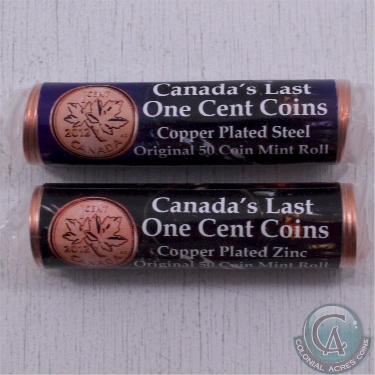 2012 Special Wrapped Magnetic and 2012 Special Wrapped Non Magnetic Canada 1-cent Original Rolls of 50 pcs. (2 rolls)