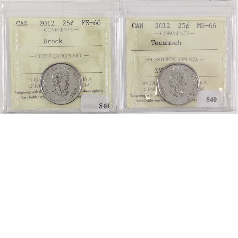 2012 Tecumseh 25ct & 2012 Brock 25ct ICCS Certified MS-66. 2pcs.