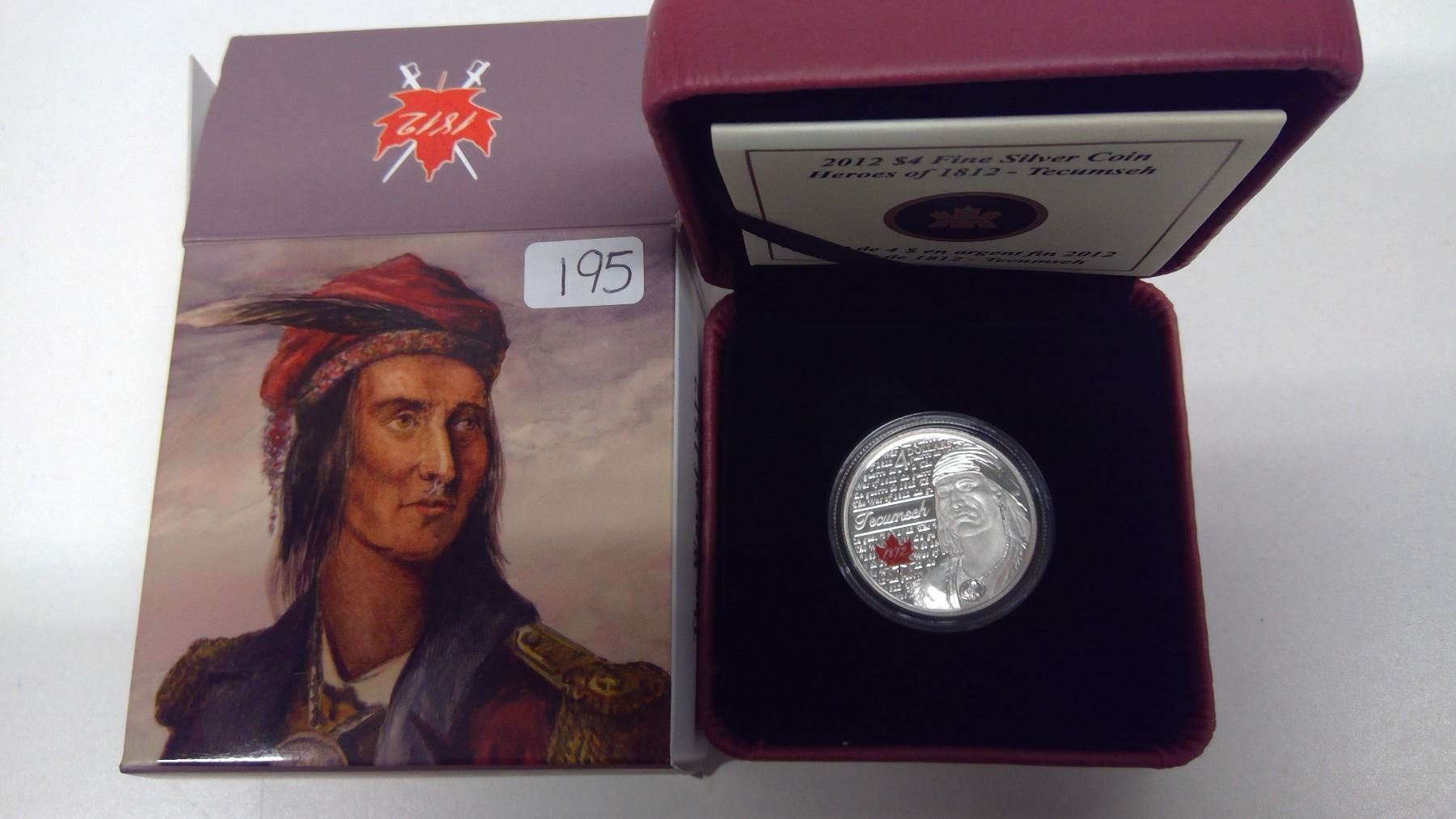 2012 The Heroes of the War of 1812 $4. Chief Tecumseh. Colourized 99.99 pure Silver. Housed in its original case and box of issue.