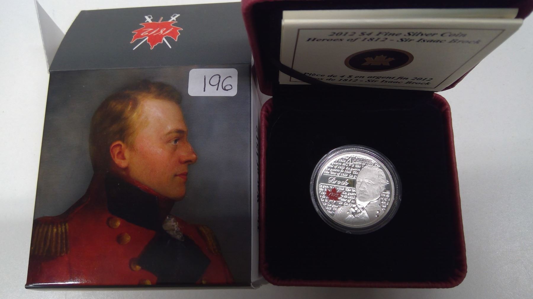 2012 The Heroes of the War of 1812 $4. Sir Isaac Brock. Colourized 99.99 pure Silver. Housed in its original case and box of issue.