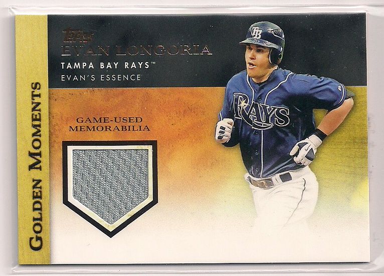 2012 Topps Goldne Moments Evan Longoria Game-Used Material Insert Card. This Insert features a Solid Gray piece of Game-Used Material, and is Near Mint.