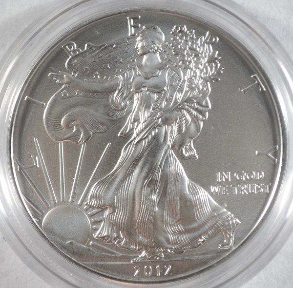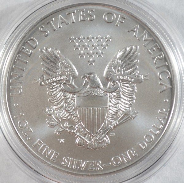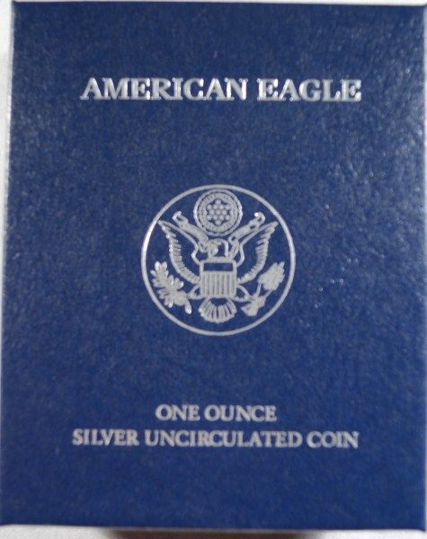 A NICE PRESENTATION OF THIS GEM BU SILVER EAGLE, EST. $50.00 TO $55.00
