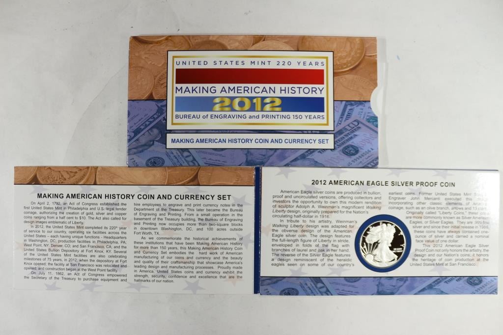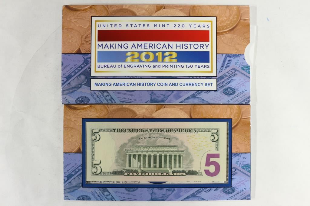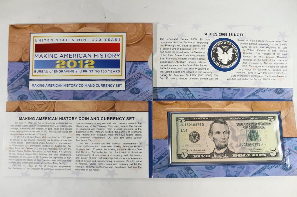 CURRENCY SET, CONTAINS: PROOF AMERICAN SILVER EAGLE AND SERIES 2009 $5 FRN, ORIGINAL US MINT PACKAGING