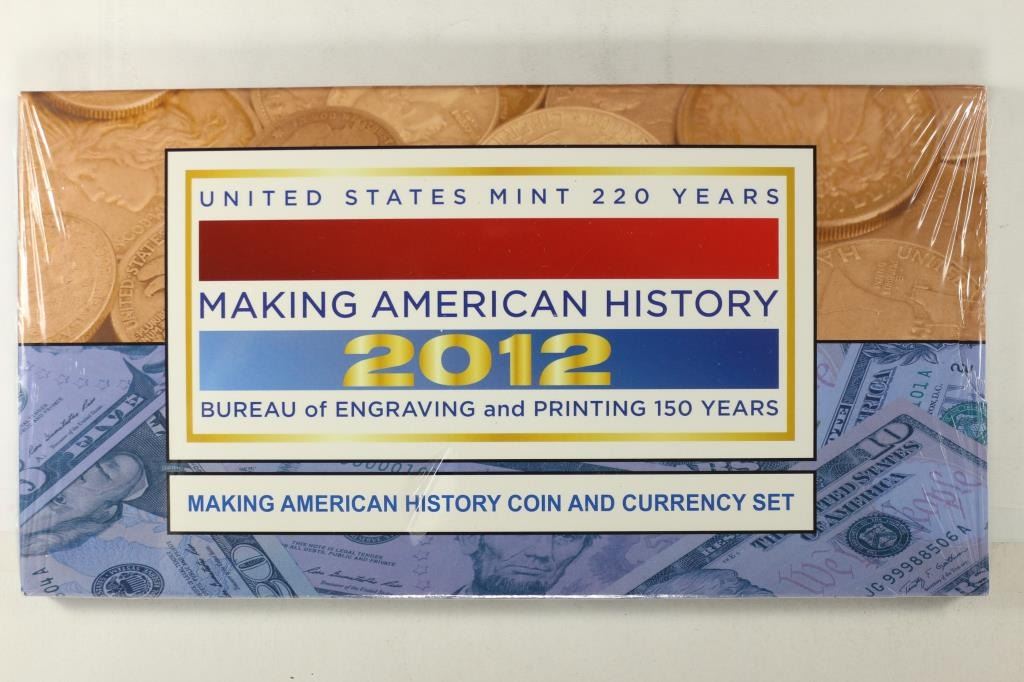 CURRENCY SET. INCLUDES 2012-S PROOF AMERICAN SILVER EAGLE AND SERIES 2009 $5 NOTE FROM THE FEDERAL RESERVE BANK OF SAN FRANCISCO. SEALED ORIGINAL US MINT PACKAGING