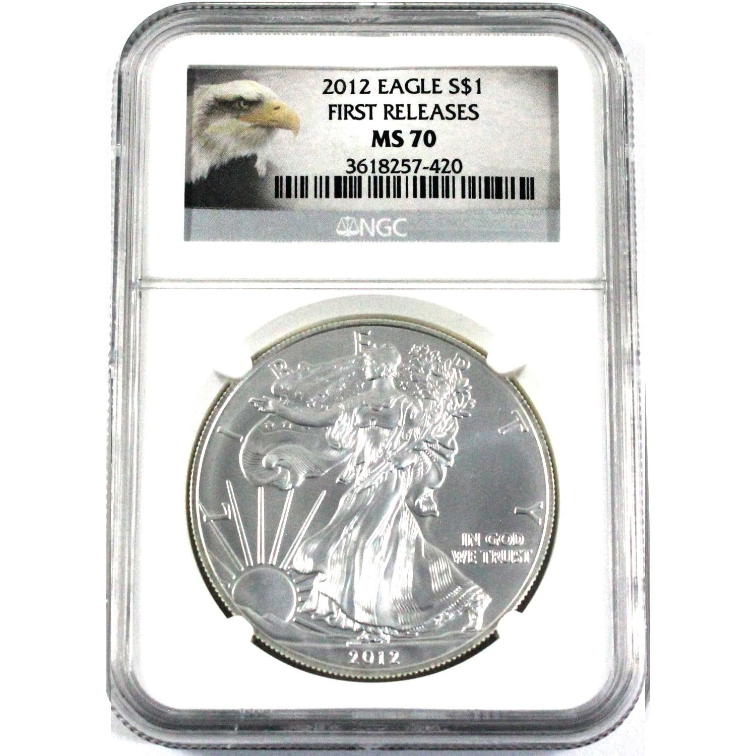 2012 USA 1oz Fine Silver Eagle NGC Certified MS-70 First Releases. (TAX Exempt)