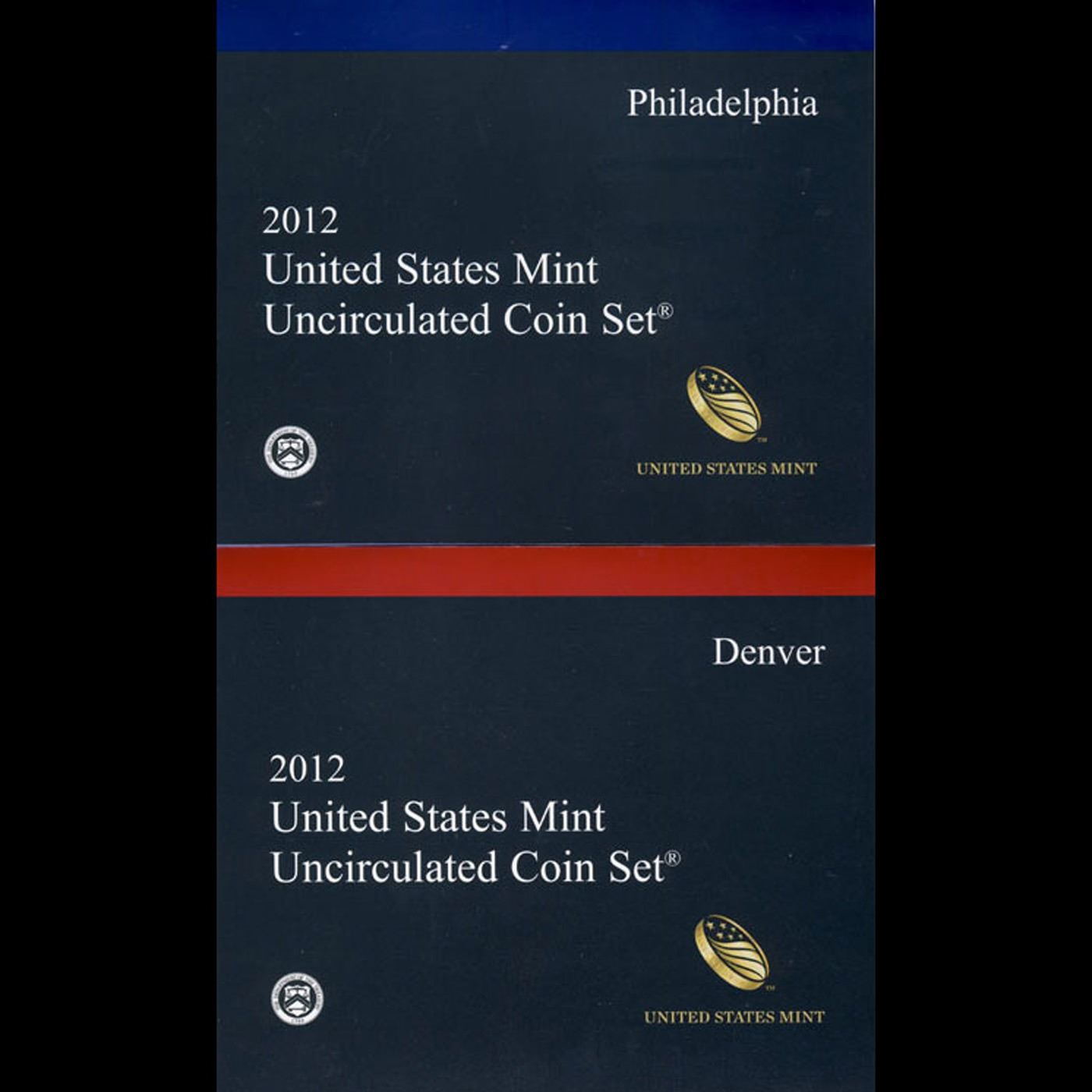 2012 United States Mint Uncirculated Coin Set 28 coins. The 2012-PD Mint Set consisted of two different sets in two blister-style folders. The blue folder contains coins from the Philadelphia Mint, the red folder contains coins from the Denver Mint. Each folder contains the Cents, Nickels, Dime, Half Dollar, and Dollar, alongside the following five 2012 Quarters: El Yunque National Forest, Chaco Culture National Historical Park, Acadia National Park, Hawaii Volcanoes National Park, and Denali National Park and Preserve. Completing each folder are the four 2012 Presidential Dollars: Chester Arthur, Grover Cleveland (first term), Benjamin Harrison, and Grover Cleveland (second term).