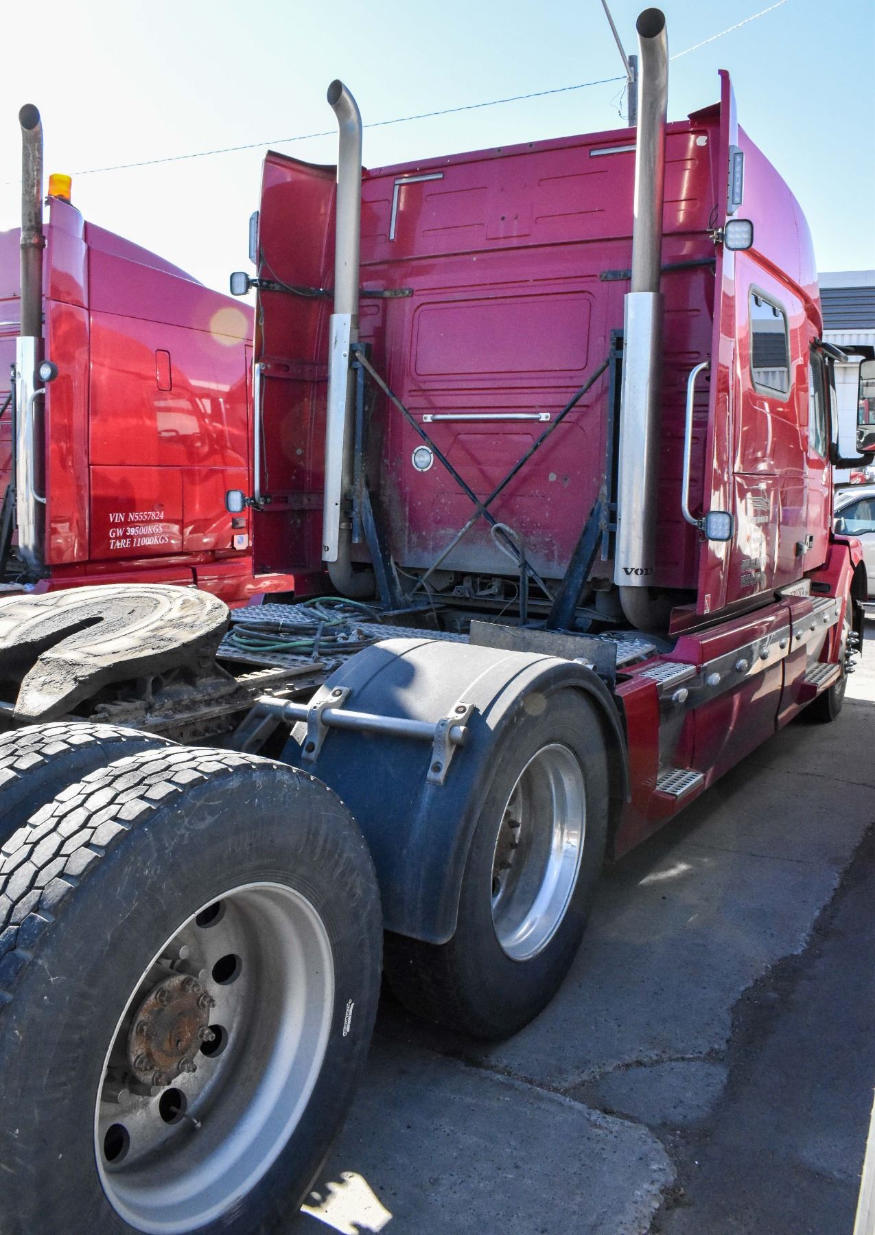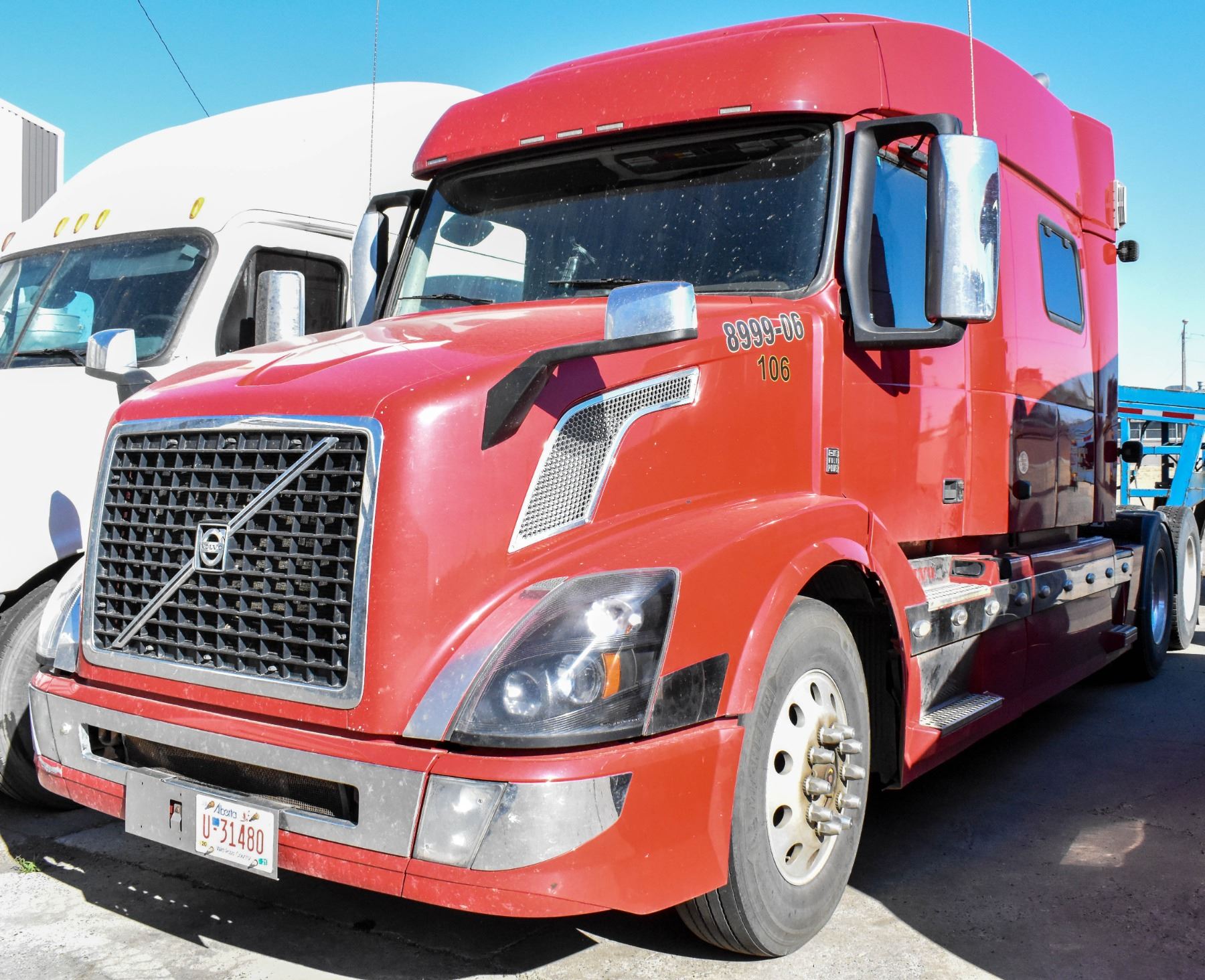 VIN: 4V4NC9EH7CN557824 KM: 1,235,753.6 Engine: 12.8L Color: RED 2012 VOLVO TRACTOR, MODEL #VNL64T670, AIR CONDITIONING, STOCK RADIO, AUTOMATIC /10 SPEED TRANSMISSION, POWER STEERING, 13,200LBS FRONT AXLE, 59" PARABALIC LEAF FRONT SUSPENSION, 40,000LBS REAR AXLE, REAR SUSPENSION LEAF/AIRBAG, REGULAR FIFTH WHEEL, 61" CAB SIZE, FULL SIZE SLEEPER, SOME INTERIOR DAMAGE/ WEAR + TEAR, ALL BIDS SUBJECT TO BANK, BAILIFF OR OWNER APPROVAL. MUST BE 18 OR OLDER IN ORDER TO PURCHASE OR BID. ALL VEHICLES ARE SOLD AS IS.