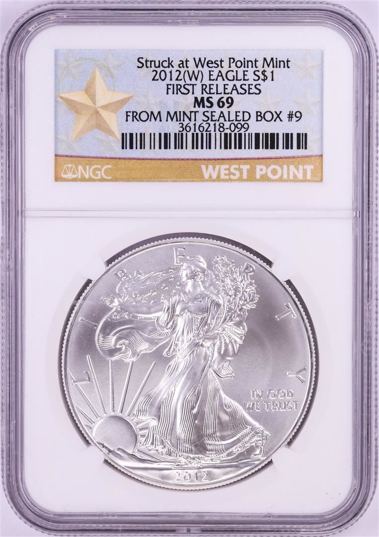 2012(W) $1 American Silver Eagle Coin NGC MS69 First Releases Mint Sealed Box #9