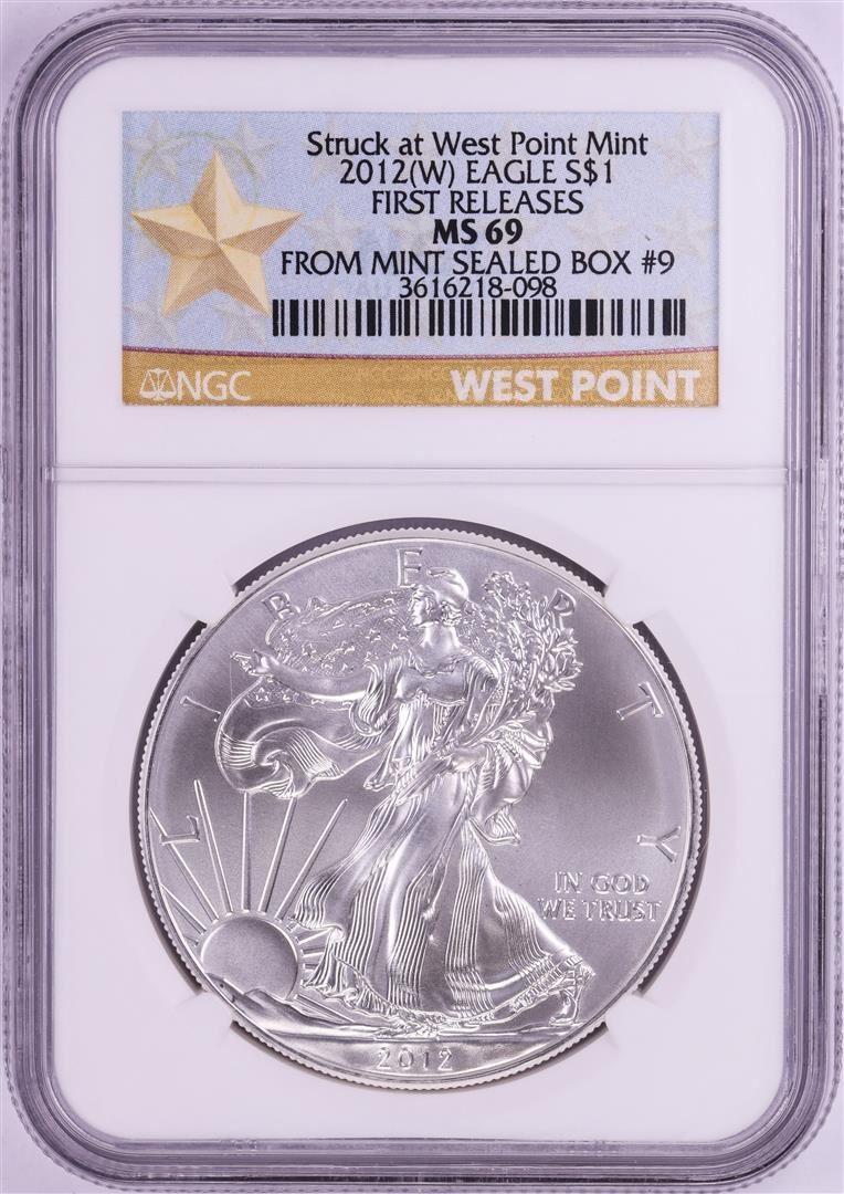 One 2012(W) $1 American Silver Eagle Coin NGC MS69 First Releases Mint Sealed Box #9. NGC Certified.
