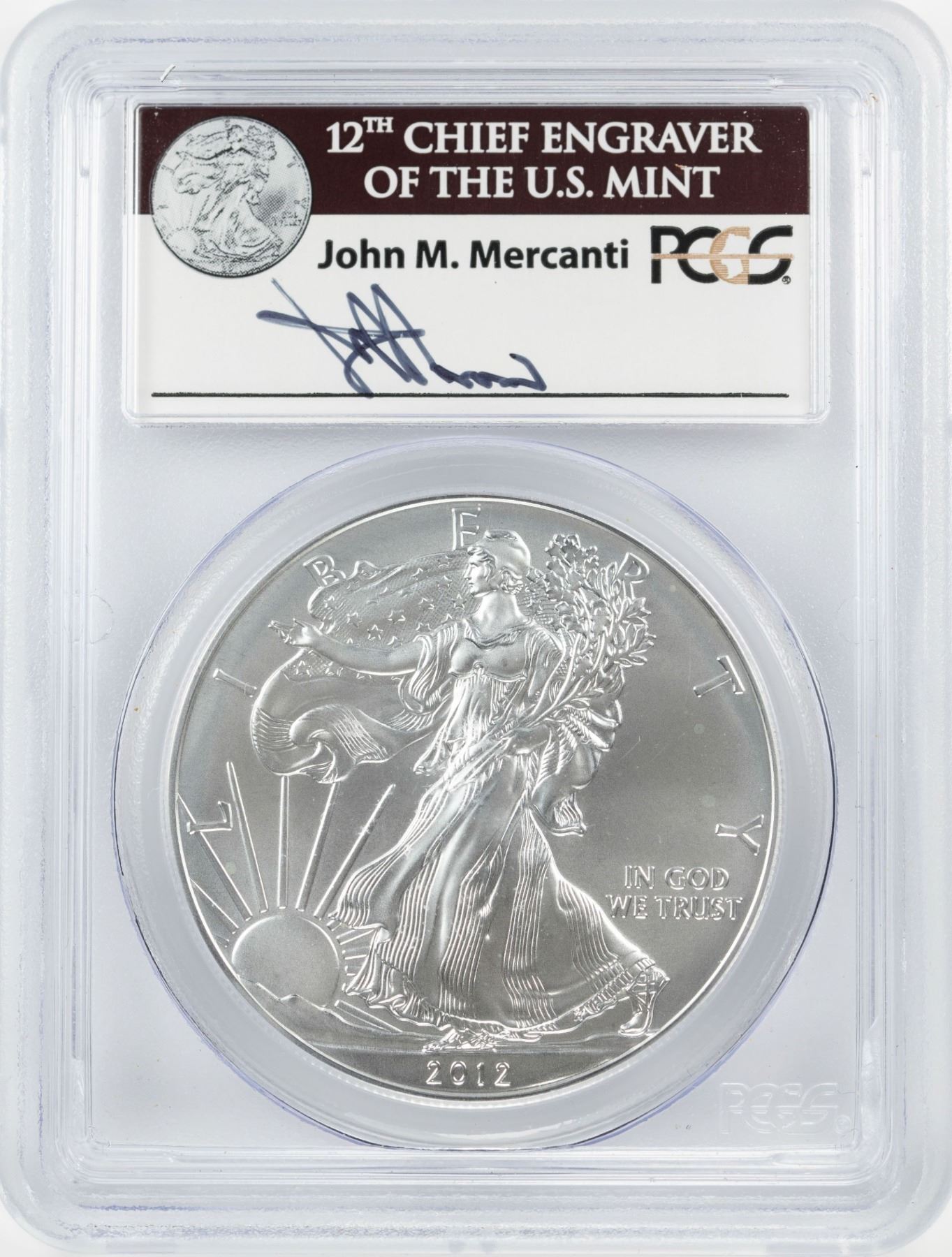 2012-W $1 American Silver Eagle Coin PCGS MS69 First Strike Mercanti Signature