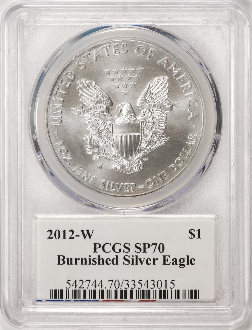 2012-W $1 Burnished American Silver Eagle Coin PCGS SP70 Edmund C. Moy Signature