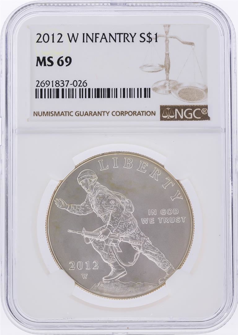 One 2012-W $1 Infantry Silver Coin NGC Graded MS69. NGC Certified.