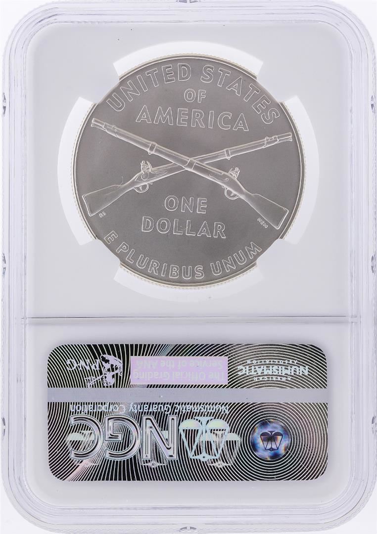 One 2012-W $1 Infantry Silver Coin NGC Graded MS70. NGC Certified.