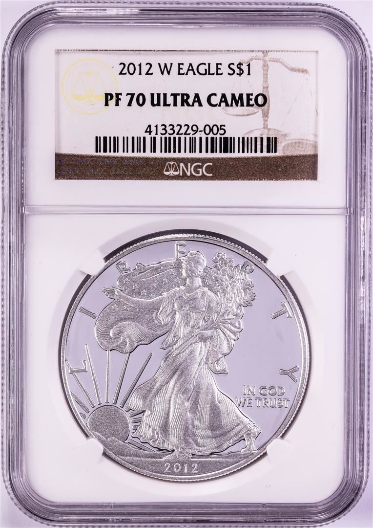 One 2012-W $1 Proof American Silver Eagle Coin NGC PF70 Ultra Cameo. NGC Certified.