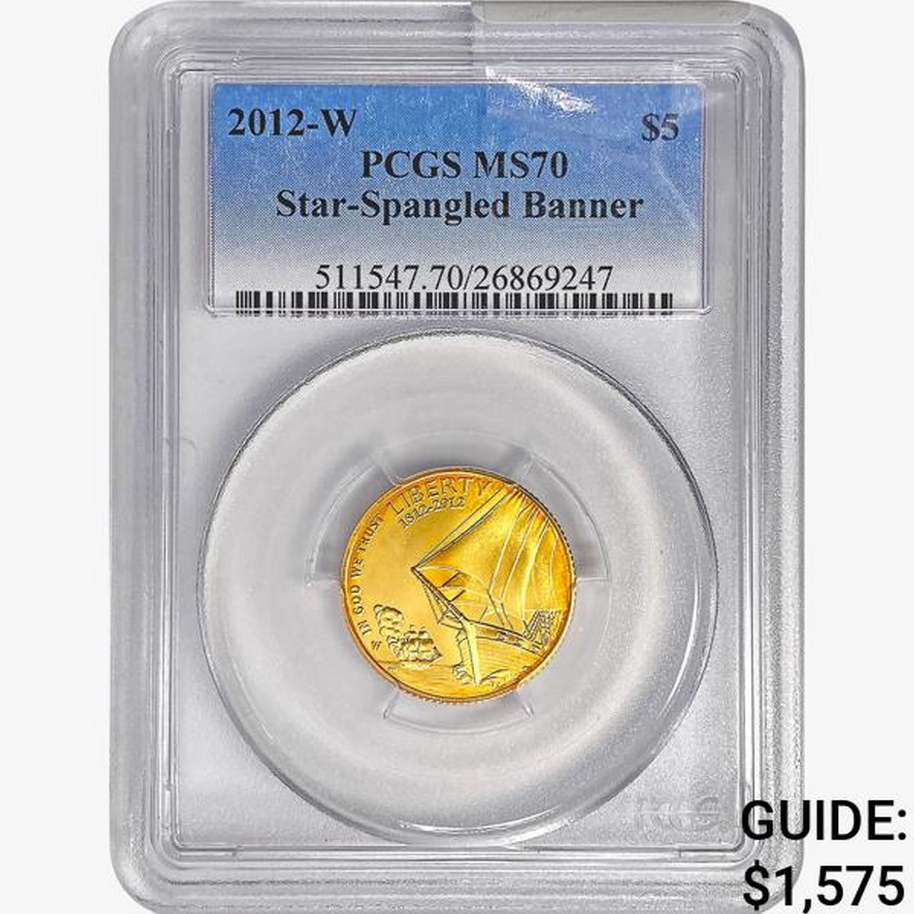 2012-W $5 .2419oz Gold PCGS MS70 Star-Spangled Ban