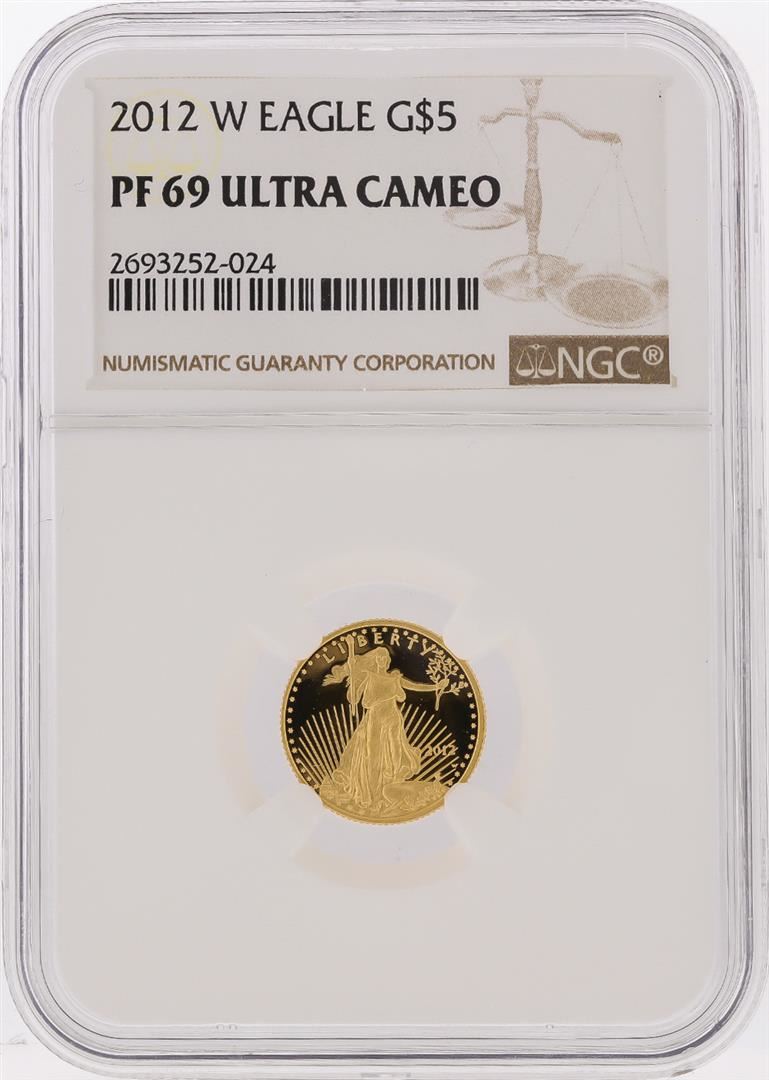 One 2012-W $5 American Gold Eagle Coin NGC Graded PF69 Ultra Cameo. NGC Certified.