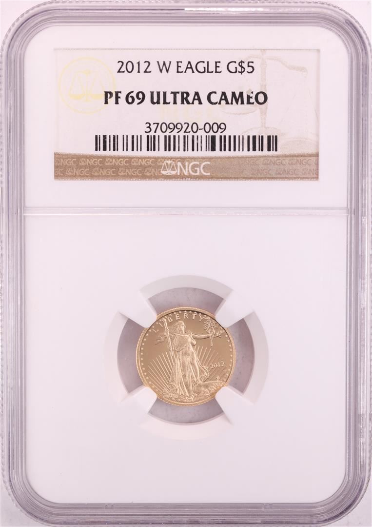 One 2012-W $5 Proof American Gold Eagle Coin NGC PF69 Ultra Cameo. NGC Certified.