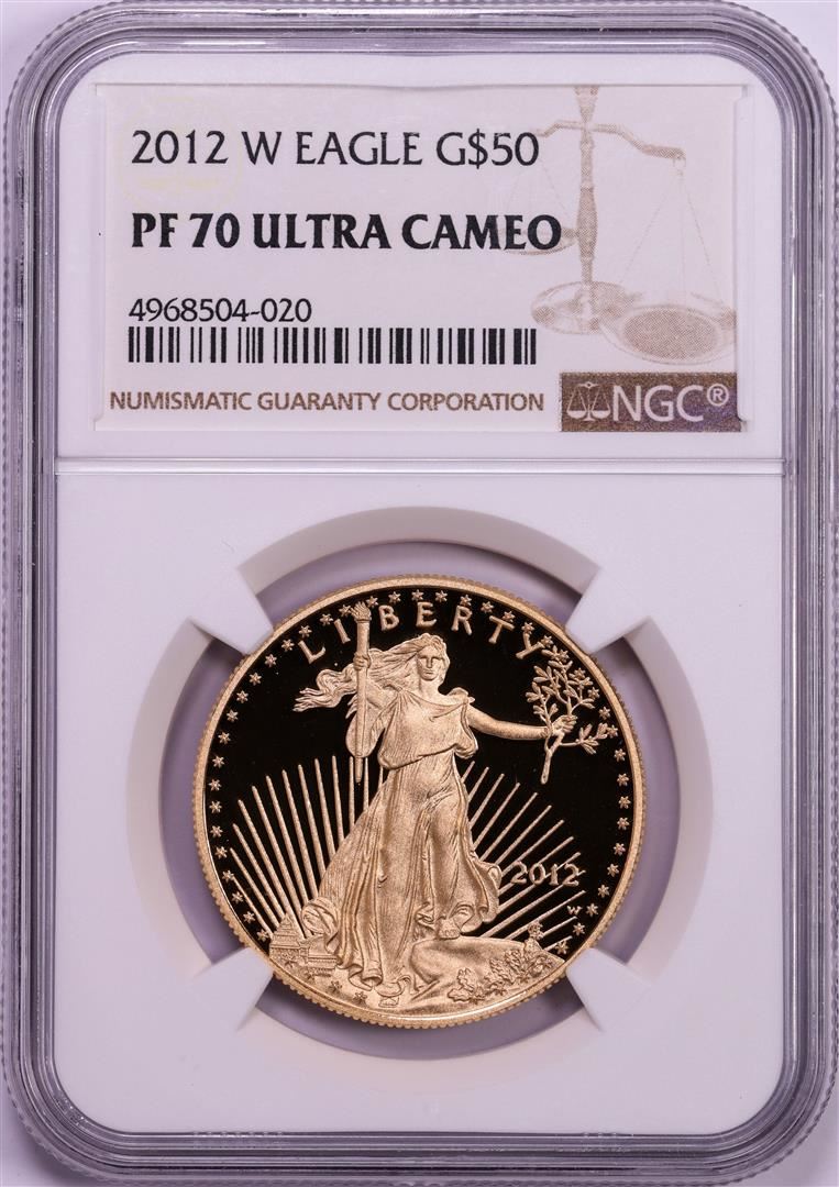 One 2012-W $50 Proof American Gold Eagle Coin NGC PF70 Ultra Cameo. NGC Certified.