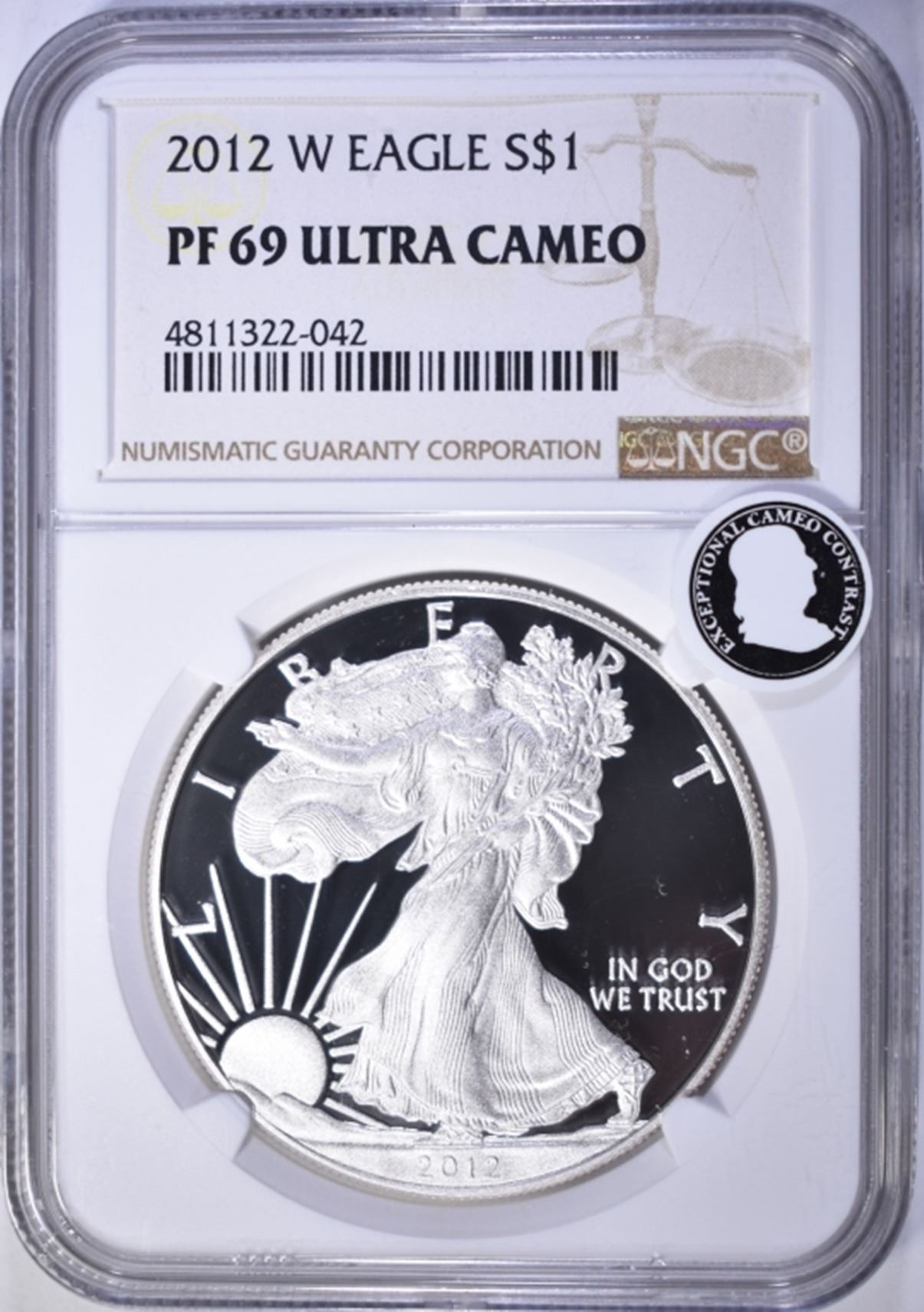 2012-W AMERICAN SILVER EAGLE, NGC PF69 ULTRA CAMEO
