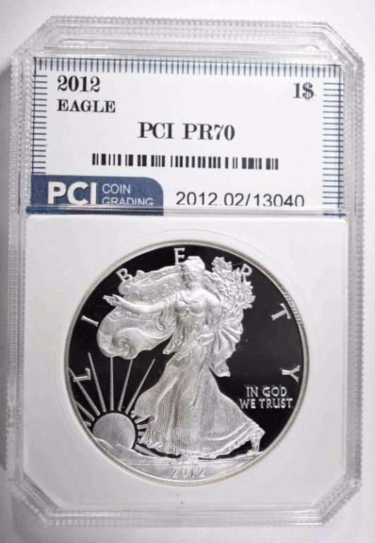 2012-W AMERICAN SILVER EAGLE, PCI PERFECT GEM PROOF ESTIMATE $75 - $85.