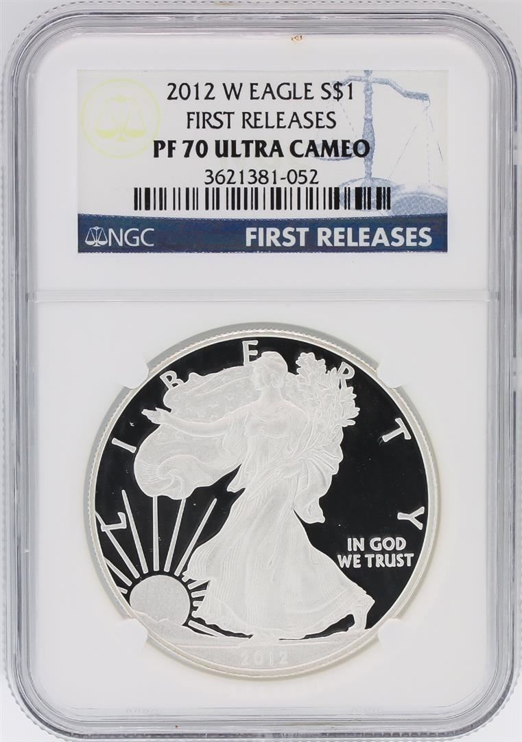 One 2012-W NGC PF70 Ultra Cameo American Silver Eagle Dollar. NGC Certified.