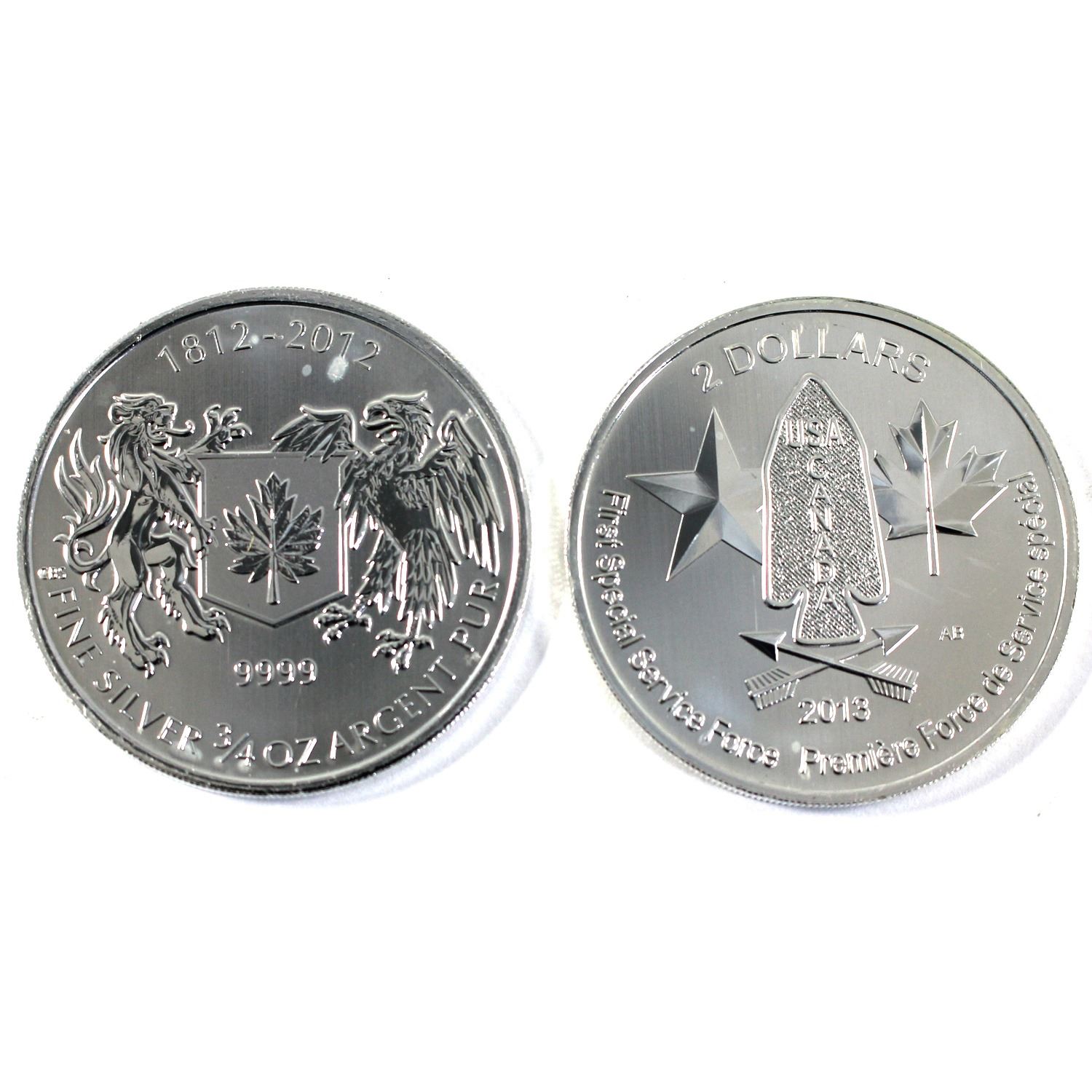 2012 War of 1812 & 2013 Devils Brigade 3/4oz .9999 Fine silver coins( Tax Exempt) 2pcs
