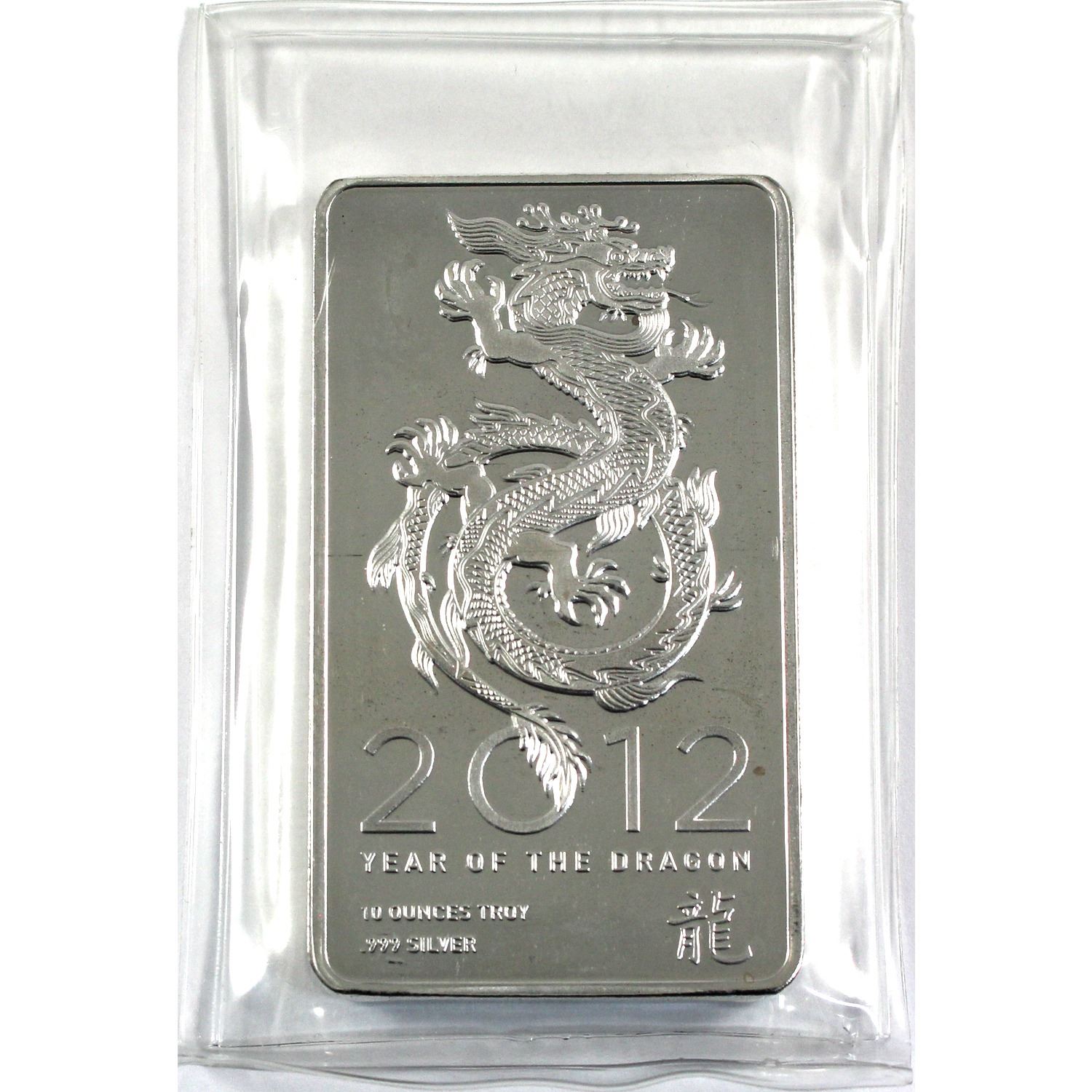 2012 Year of the Dragon 10oz .999 Fine Silver Bar in Sealed Plastic. (TAX Exempt)
