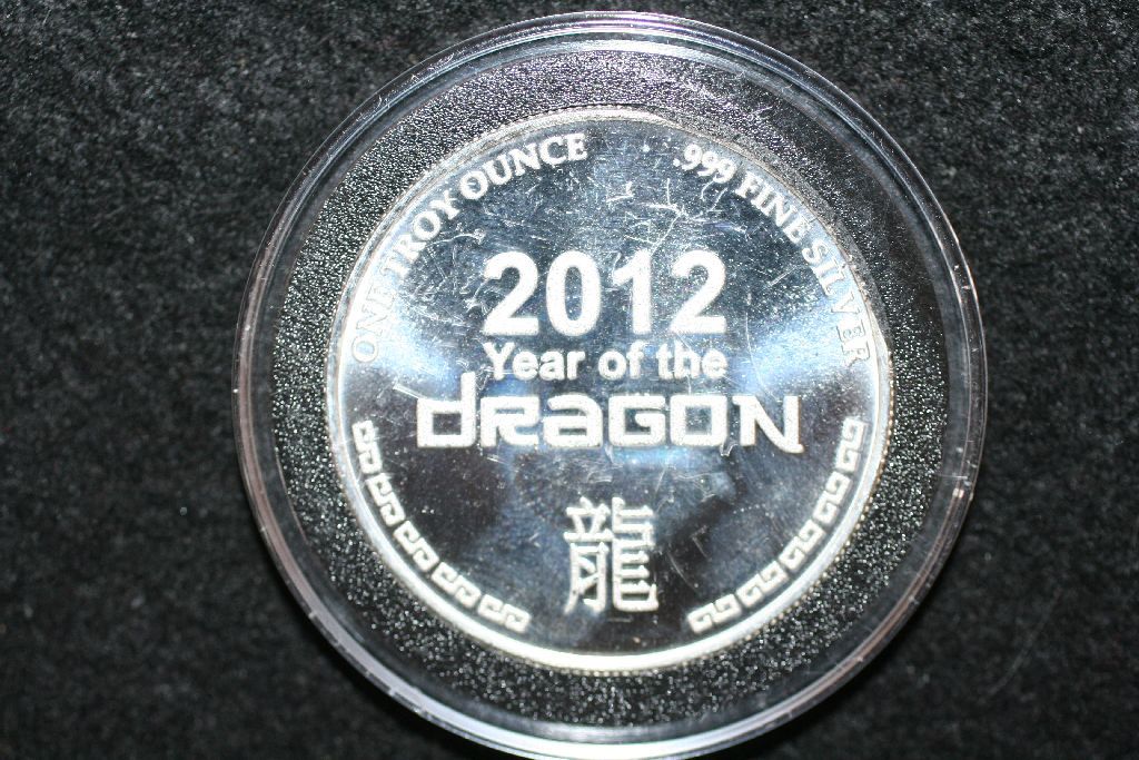 2012 Year of the Dragon Silver Round; .999 Fine Silver 1 Oz.