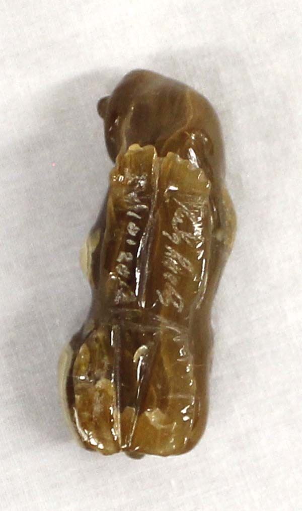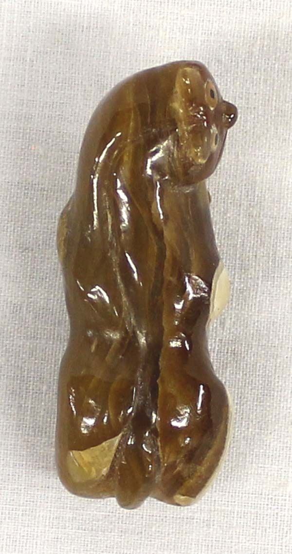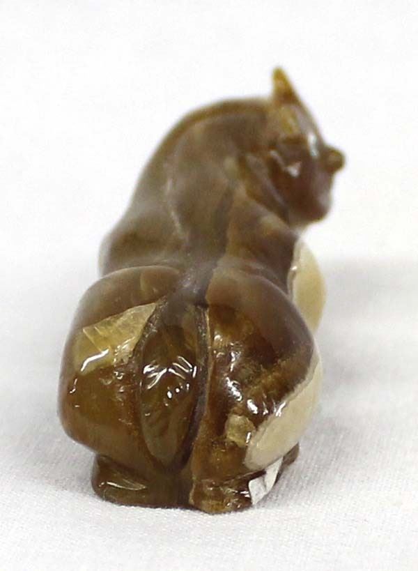 2012 Native American Zuni Travertine Mountain Lion Fetish by Ricky Laahty, measures 2'' x .5'' x .5'', signed on the bottom