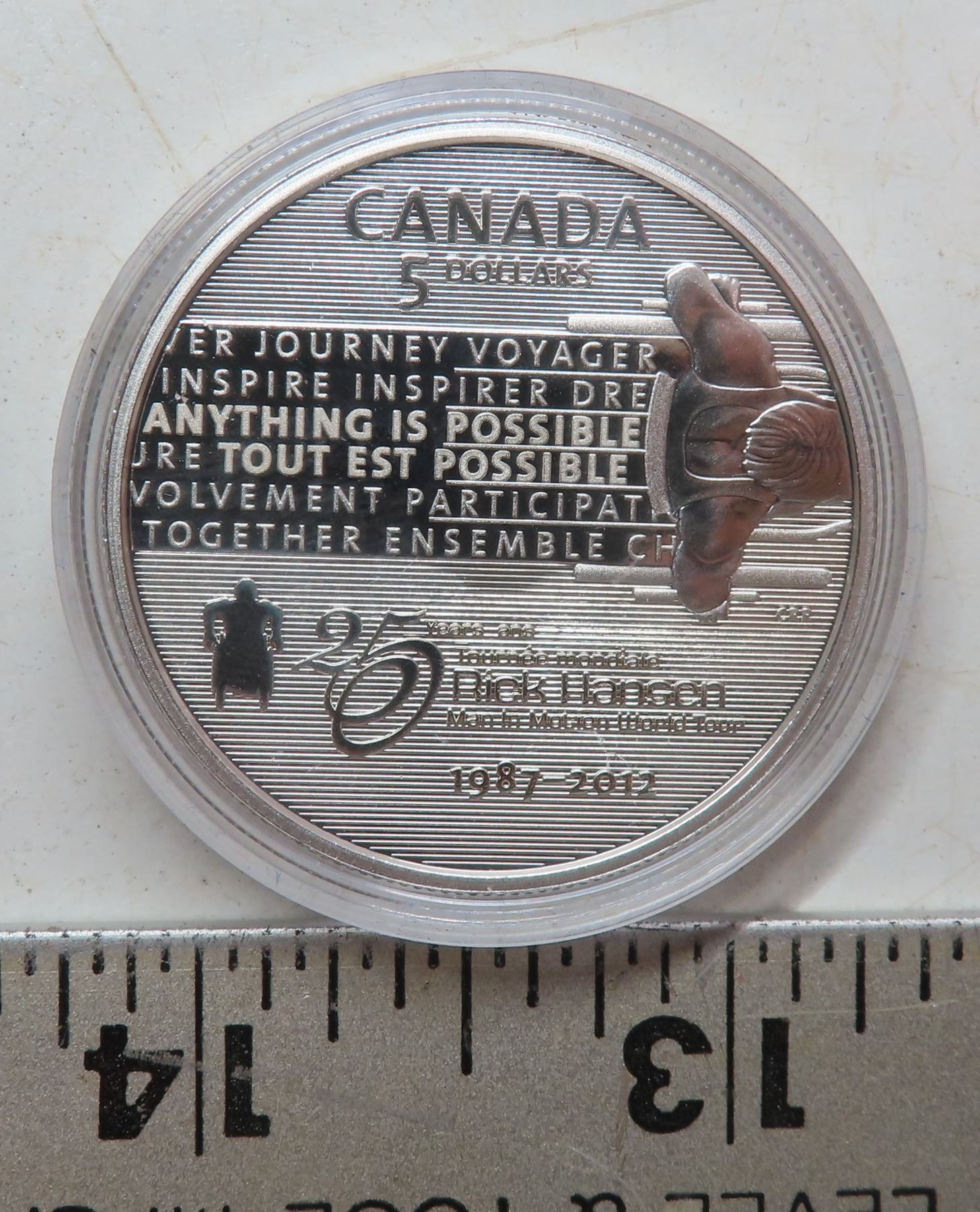 2012 proof $5 25th anniversary of rick Hanson, fine silver