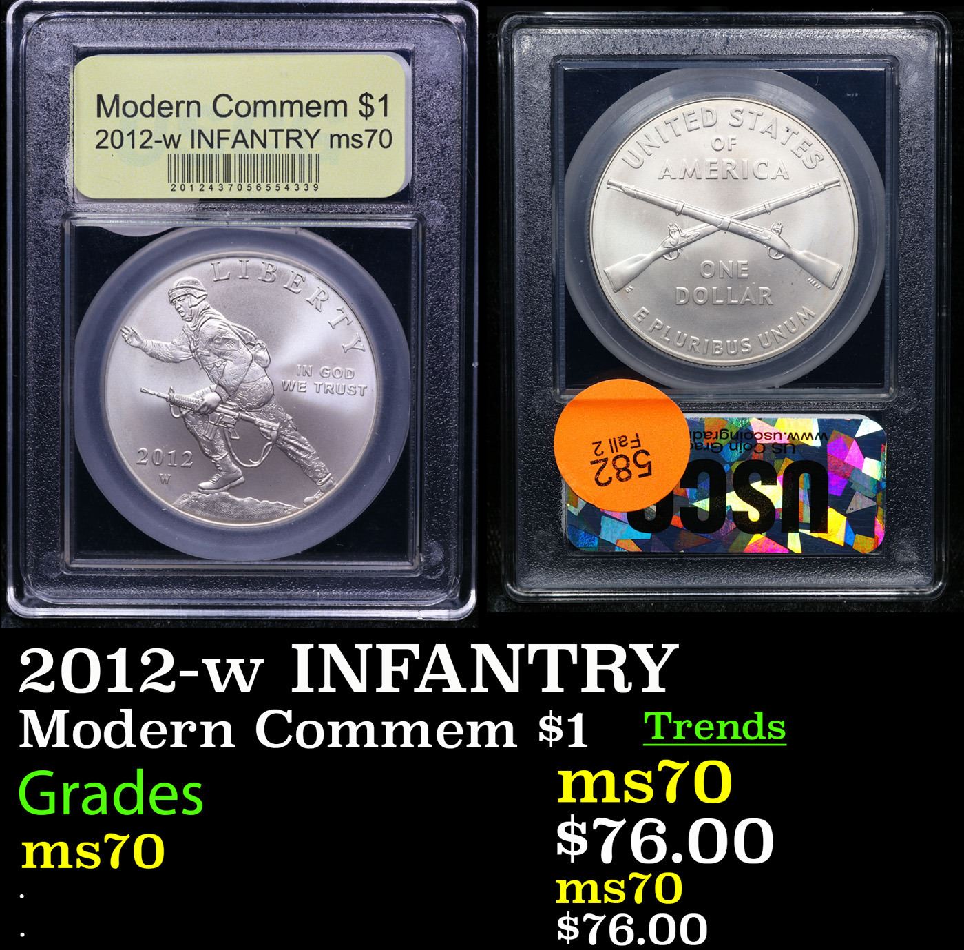2012-w INFANTRY Modern Commem Dollar $1 Graded ms70, Perfection By USCG