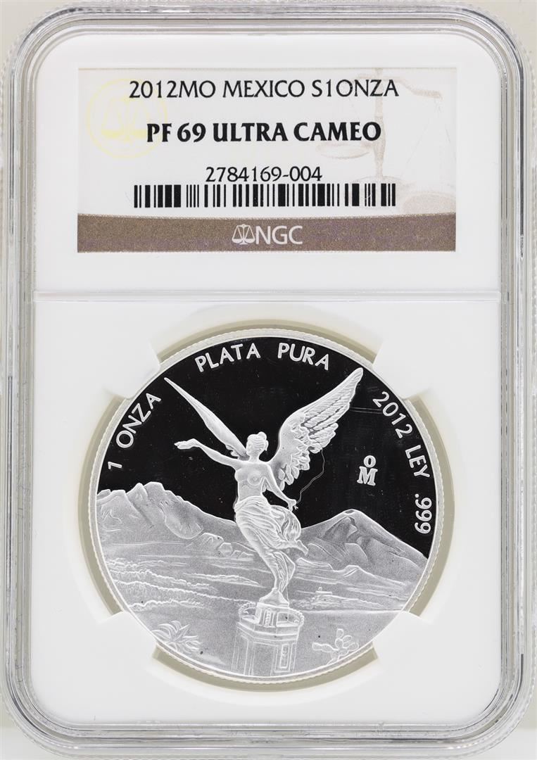One 2012MO Mexico Onza Proof Silver Coin NGC PF69 Ultra Cameo. NGC Certified.