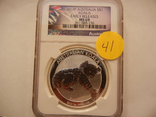 2012P $1 Australian Koala, Early Releases, .999 Fine Silver, 1 Troy Oz, Graded by NGC MS69
