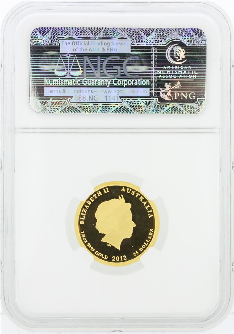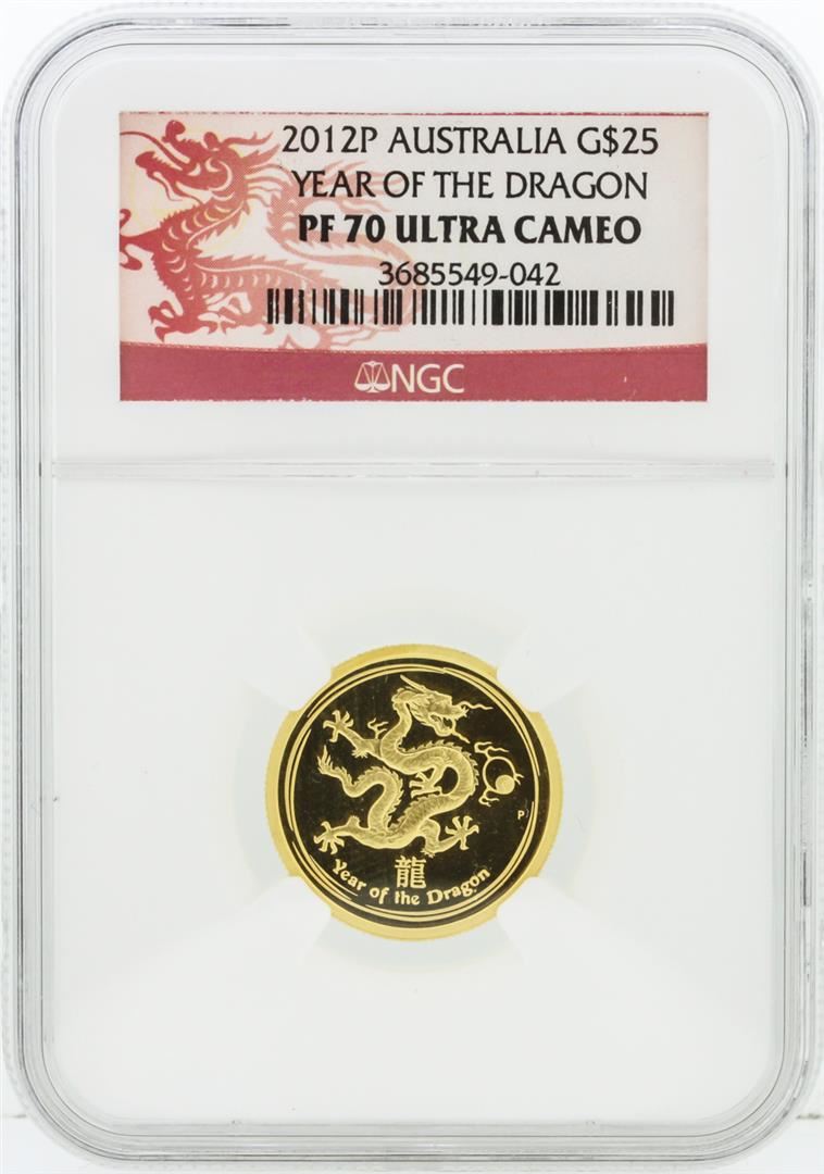One 2012P NGC PF70 Ultra Cameo Australia G$25 Year of the Dragon 1/4 oz Gold. This coin would make a great addition to any collection. NGC Certified.