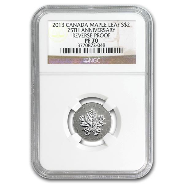 2013 1/10 oz Silver Canadian $2 Maple Leaf 25th Anniv. PF-70 NGC