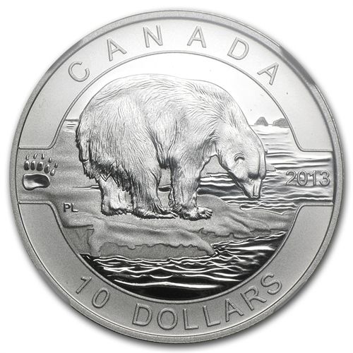 2013 1/2 oz Silver Canadian $10 Polar Bear - Matte PF 7 **|**|** 2013 1/2 oz Silver Canadian $10 Polar Bear - Matte PF 70 NGC ER ; MSRP: $100
