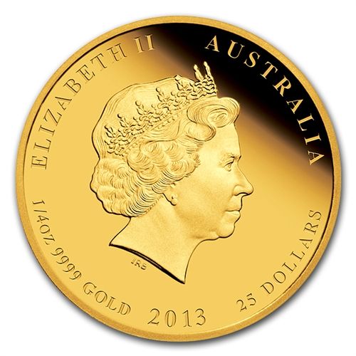 2013 1/4 oz Proof Gold Lunar Year of the Snake (Series **|**|** Year: 2013 ; Mint Mark: Proof ; Grade: P - Perth Mint ; Denomination: $25 ; MSRP: $800