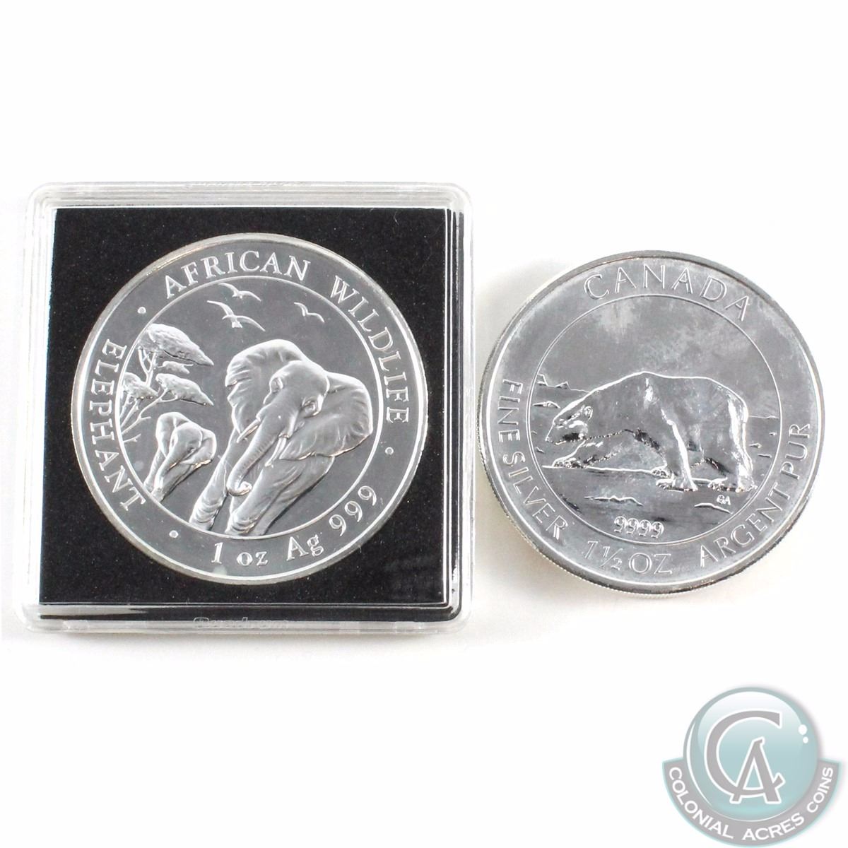 2013 1.50oz Canadian Polar Bear Fine Silver Coin and 2015 1oz Somalian Elephant Fine Silver Coin (Tax Exempt)