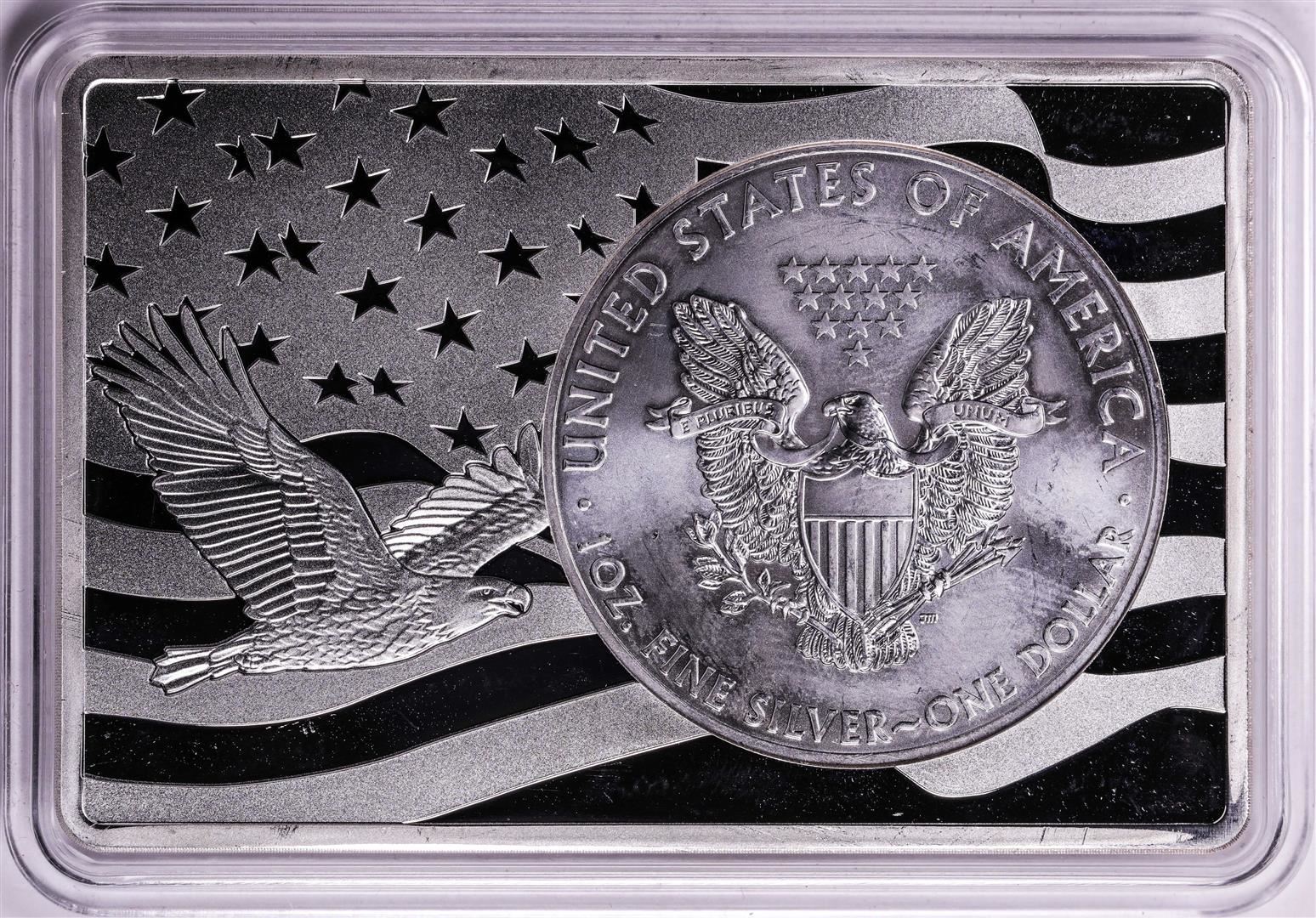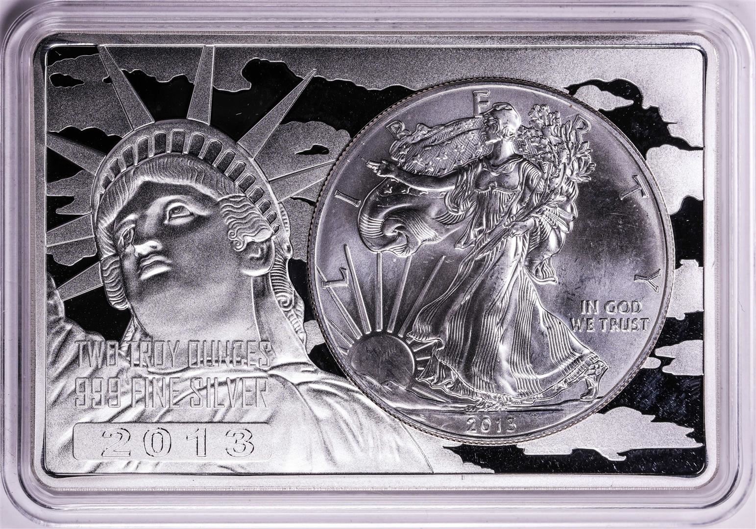 One 2013 $1 American Silver Eagle Coin & 2oz Silver Bar Set.