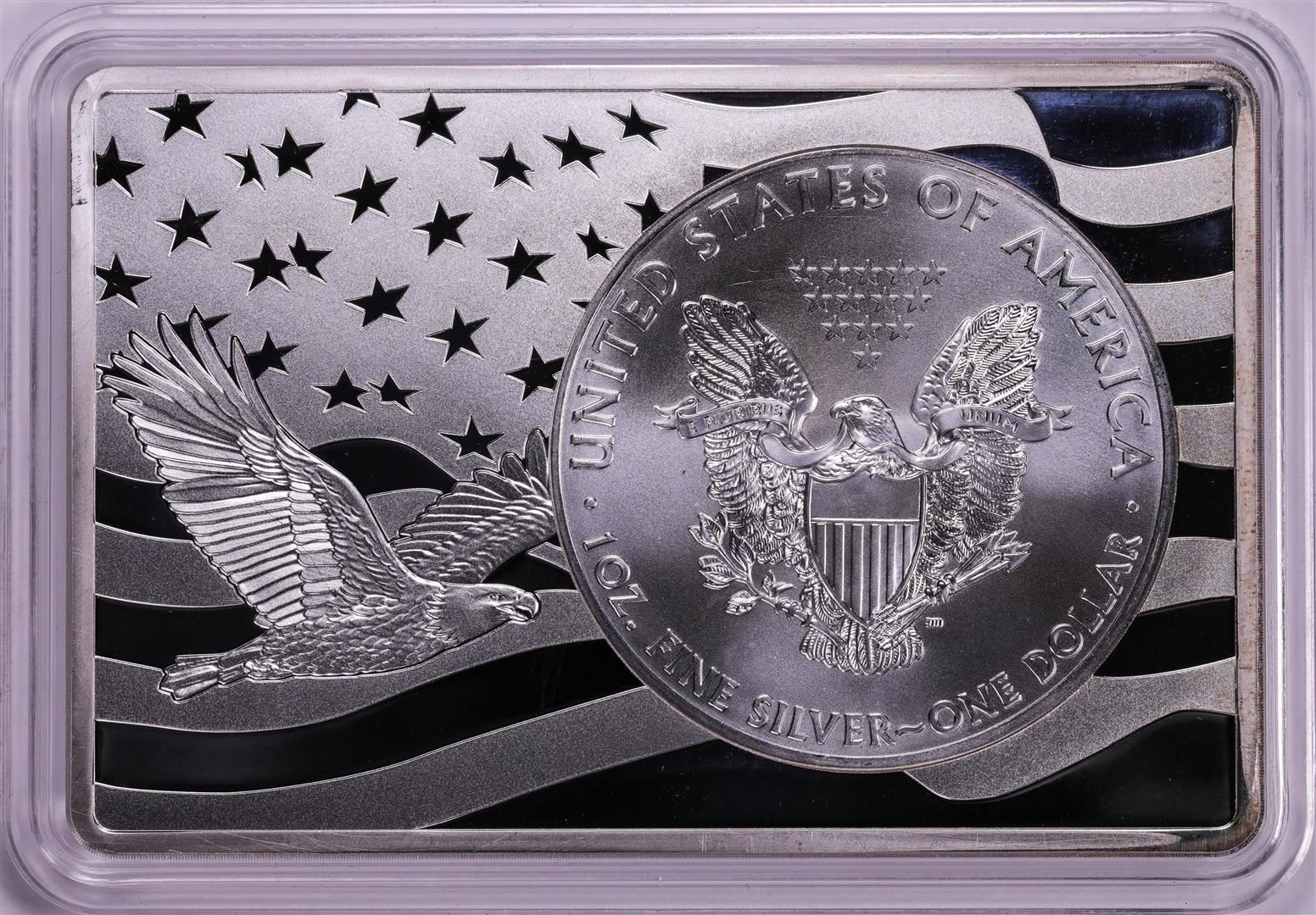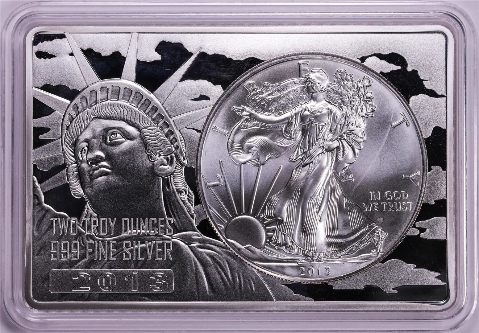 One 2013 $1 American Silver Eagle Coin & 2oz Silver Bar Set.