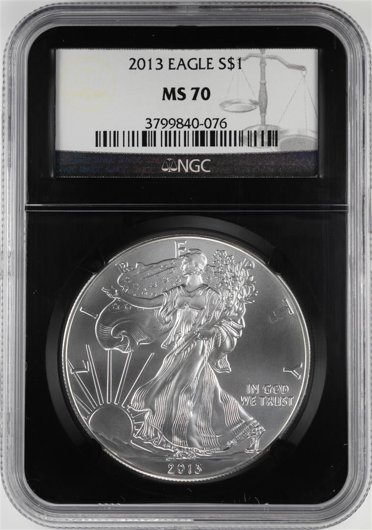 One 2013 $1 American Silver Eagle Coin NGC MS70 Black Core. NGC Certified.