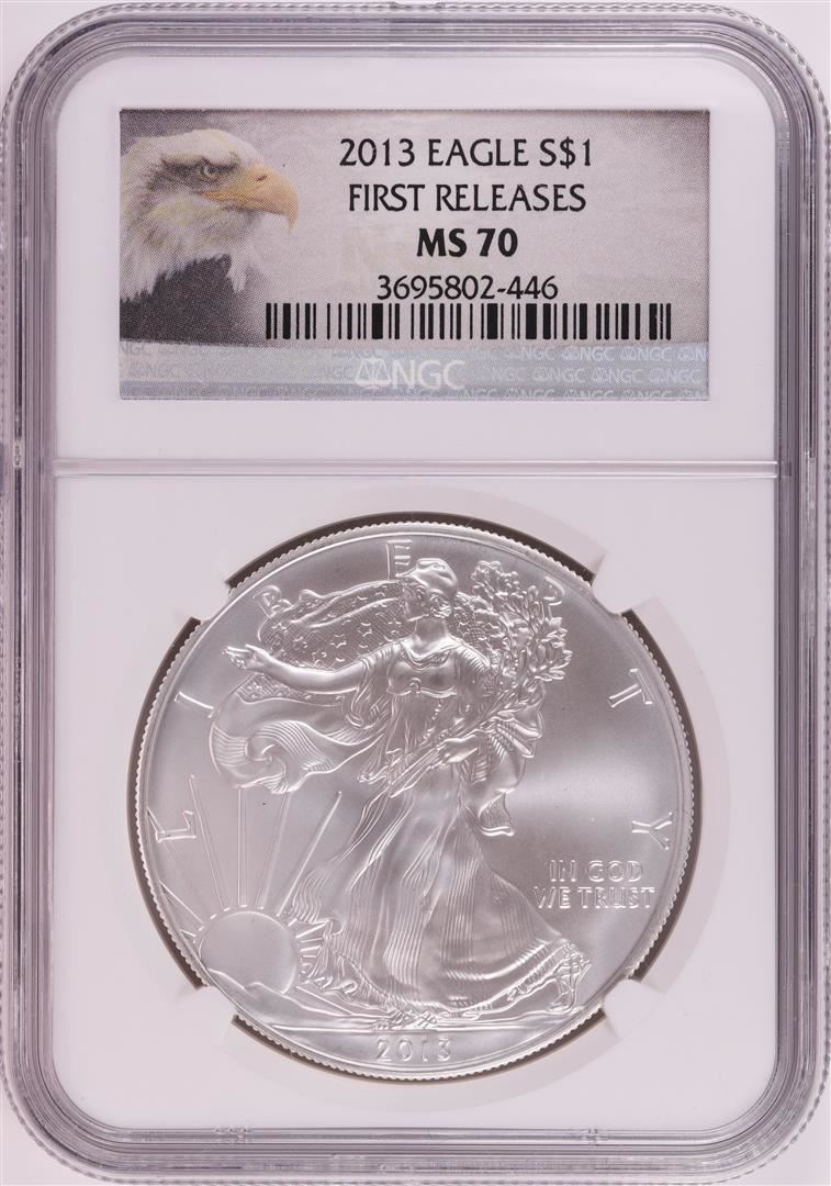 One 2013 $1 American Silver Eagle Coin NGC MS70 First Releases. NGC Certified.