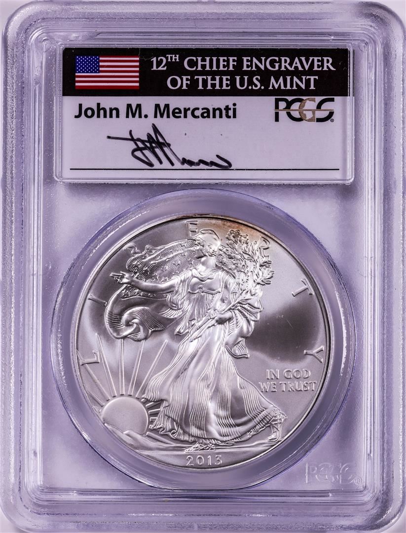 2013 $1 American Silver Eagle Coin PCGS MS69 First Strike Mercanti Signature