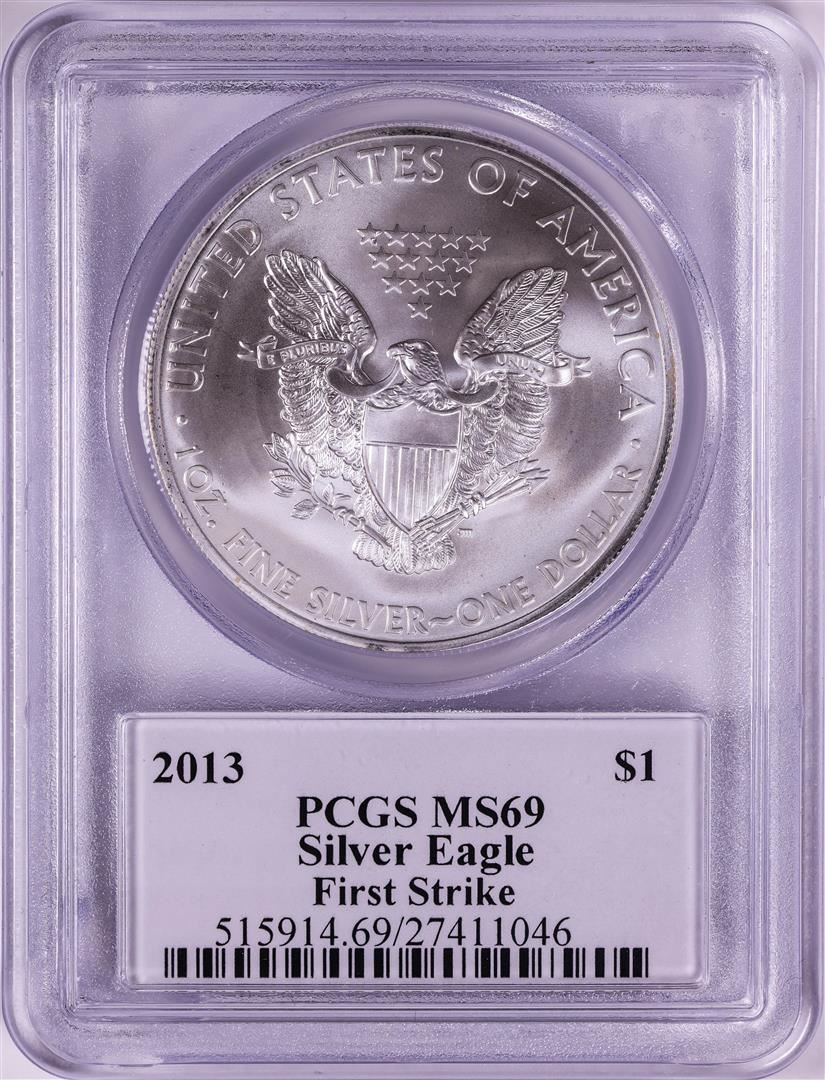 One 2013 $1 American Silver Eagle Coin PCGS MS69 First Strike Mercanti Signature. PCGS Graded.