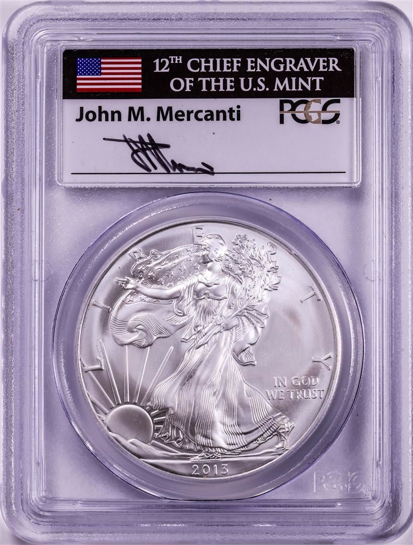 2013 $1 American Silver Eagle Coin PCGS MS69 First Strike Mercanti Signature