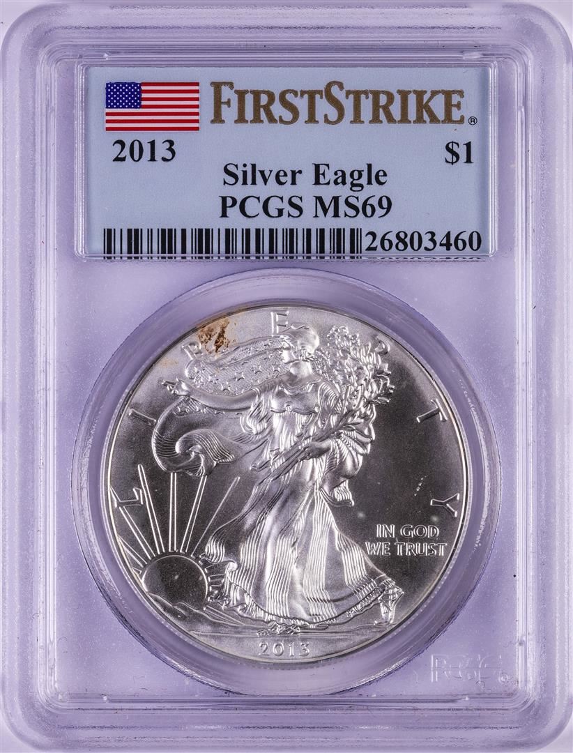 One 2013 $1 American Silver Eagle Coin PCGS MS69 First Strike. PCGS Graded.